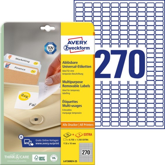 ETYKIETY A4 AVERY 17,8*10mm USUWALNE BIAŁE (25)