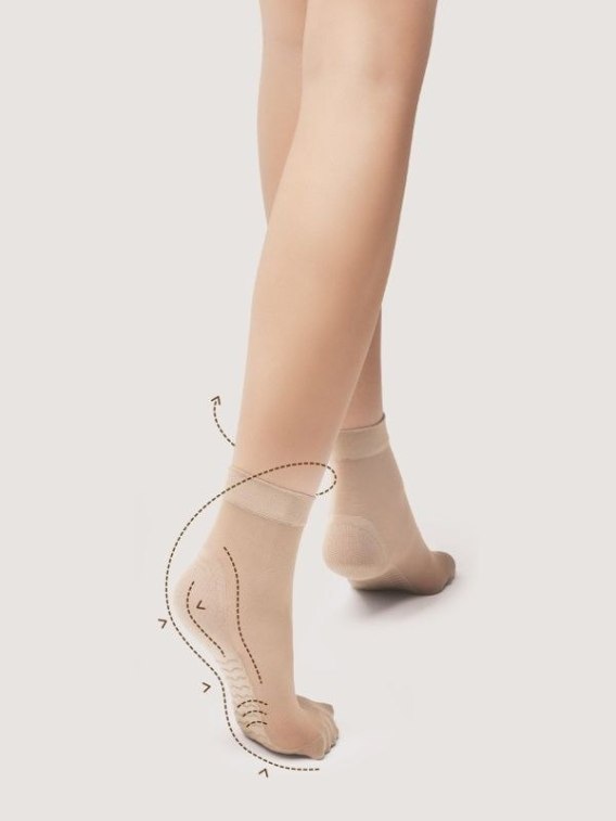 Bardzo praktyczne skarpetki o grubości 20 DEN z efektem masażu stóp i bezuciskowym ściągaczem. Stworzone w technologii Silver Fresh, dzięki czemu skóra pozostaje sucha i świeża. Ograniczony rozwój grzybów i bakterii za sprawą jonów srebra. Skład: 80% poliamid, 20% elastan.