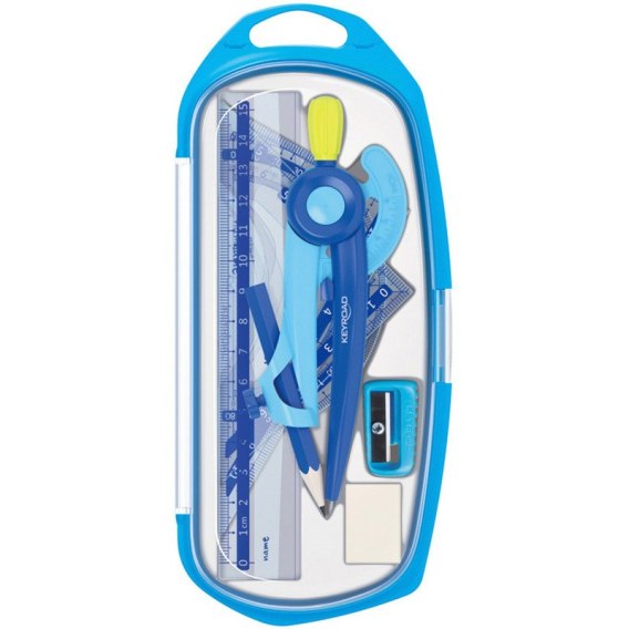 Zestaw Keyroad: cyrkiel linijka kątomierz ekierka temperówka gumka